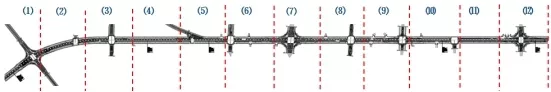 而江蘇新沂“智慧路燈”又是新沂“智慧城市”建設(shè)的重要組成部分。該項目由上海三思負責(zé)設(shè)計施工,地點在江蘇省新沂開發(fā)區(qū)古鎮(zhèn)大道至大橋西路主要干道,總長度3950米,由203套智慧路燈和LED路燈構(gòu)成,其整體布局如下所示。